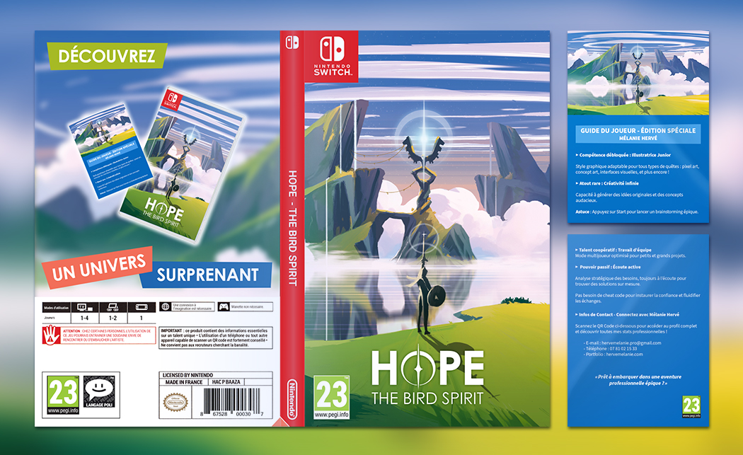 Création d’un CV illustré sous la forme d’une jaquette de jeu Switch, conçu comme un objet ludique et original pour valoriser une compétence centrale : l’illustration digitale.