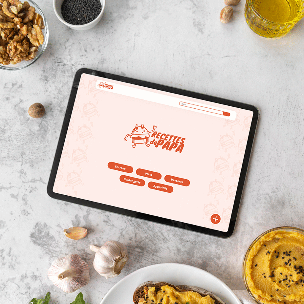 Création d’une identité visuelle et d’un site web autour d’un projet personnel, imaginé en collaboration avec un proche. L’objectif : concevoir une interface claire et intuitive permettant de centraliser, modifier et consulter des recettes de cuisine en toute simplicité.